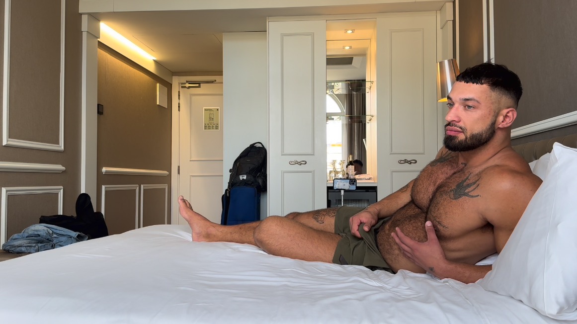 There’s something extra sexy when a masculine beefcake who is macho in the streets goes bottom beta between the sheets. That’s what the hunky Giuspel does in this MichaelLucas.com scene with the website’s namesake, Michael Lucas! Michael captures the action of Giuspel servicing his big uncut cock on his own private cameras!